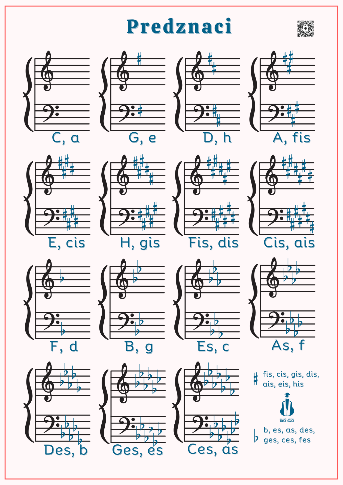Pregled svih tonaliteta kroz predznake, sa povisilicama i snizilicama. Jednostavno, pregledno i korisno i za učenje i za proveru znanja. Nakon uplate , na mejl ćete u najkraćem roku dobiti poster u elektronskom formatu. Posteri se mogu štampati u formatima od A1 do A5.