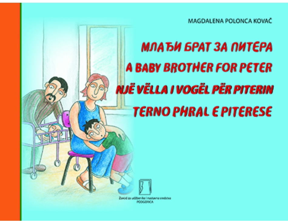 Mlađi brat za Pitera // A baby brother for Peter (engleski jezik) // Një vëlla i vogël për Piterin (albanski jezik) // Terno phral e Piterese (romski jezik) // Knjiga je za djecu uzrasta 5+ godina. U četvorojezičnom izdanju objavljena je u okviru posebne biblioteke za djecu i mlade Zavoda za udžbenike i nastavna sredstva.