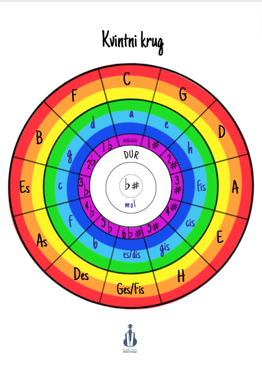 Poster Kvintni krug je namijenjen djeci školskog uzrasta za formalno i neformalno učenje muzičke teorije. Svi tonaliteti sa jasnim brojem predznaka i uz Rainbow pozadinu. Nakon uplate, na mejl ćete u najkraćem roku dobiti poster u elektronskom formatu. Posteri se mogu štampati u formatima od A1do A5.
